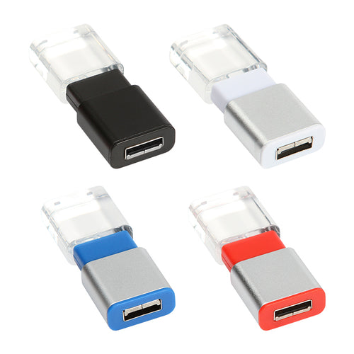Memoria usb 8 gb de cristal cuadrada con tapa metalica y luz led color azul